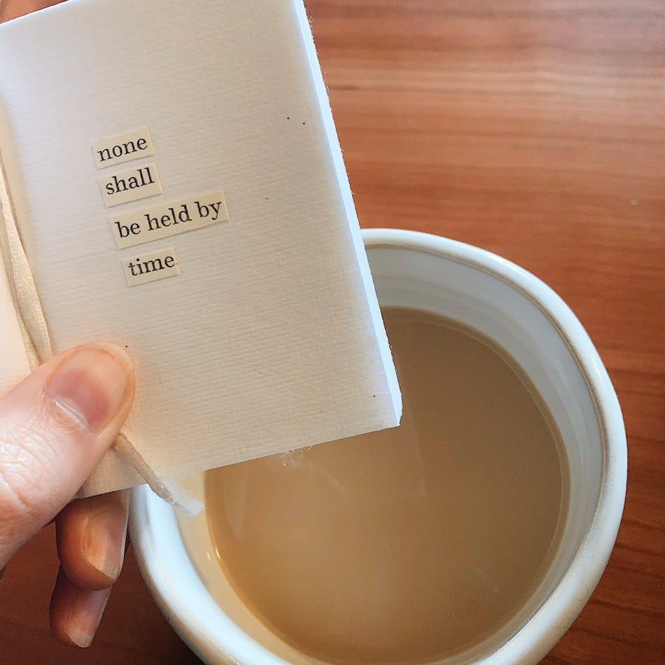 While I might not churn out an essay every week, I do love the idea of getting back to a consistent publishing schedule. I’ve been realizing lately that I think I just don’t get that excited about crafting longform posts in the way I typically see on here. I know that’s what the platform is for, and clearly an essay occasionally rears its head (case in point), but what excites me way more is exploring post formats that feel more collage-like in their structure, different pre-existing elements coming together to form something new. A little chaotic, a little mysterious. Language and visuals and other forms of as-yet-undiscovered communication coalescing, delivering messages even I don’t realize until they arrive.